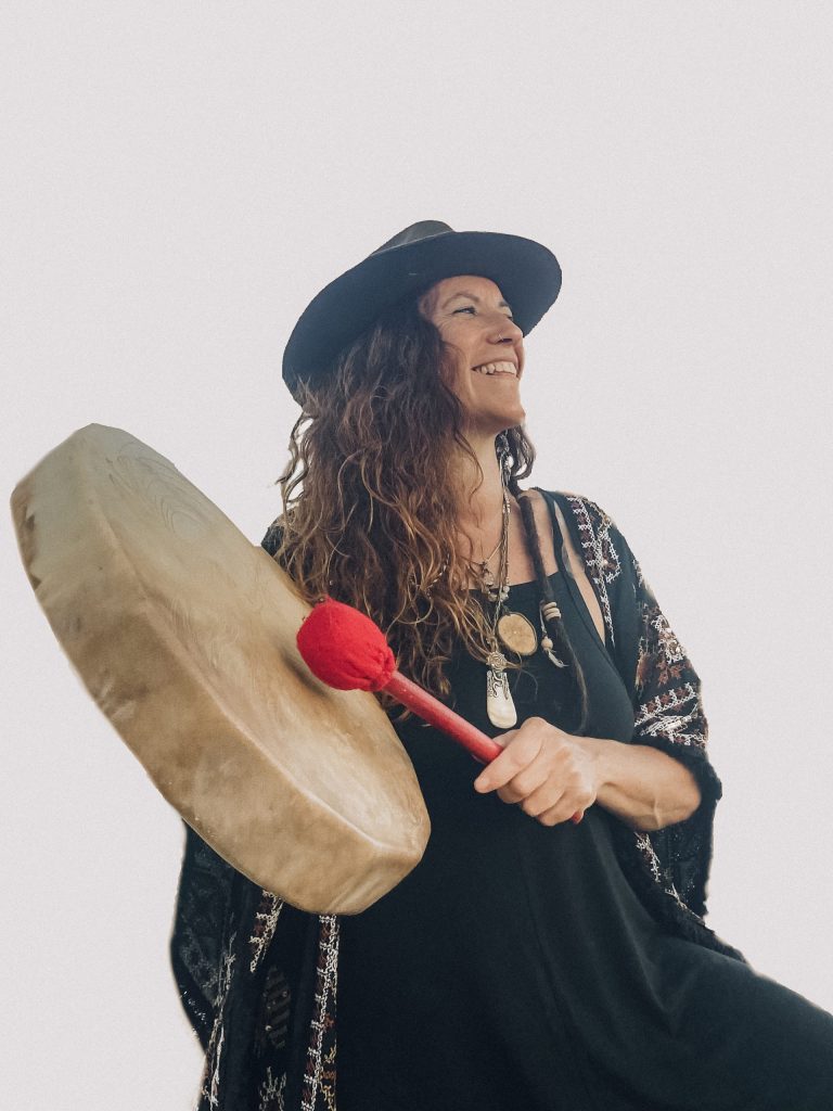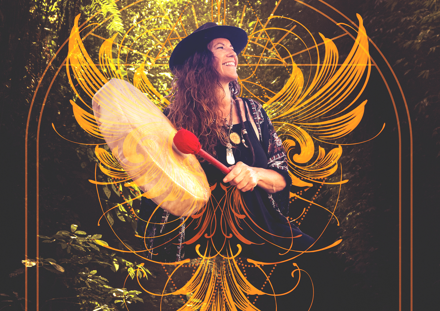 Crea espacios rituales donde comparte una canción viva, nacida en el momento presente y que emerge desde lo más profundo del Ser.